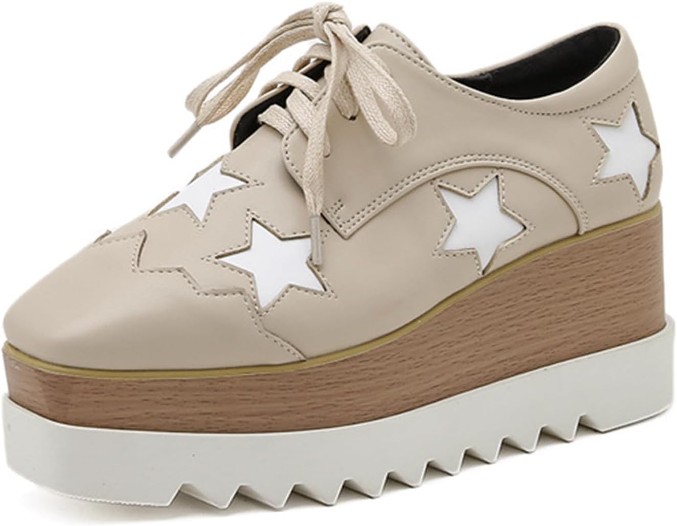 Amtopiyo Women's High Platform Square Toe Trainers Lace-Up Wedge Heel Casual Creepers Shoes