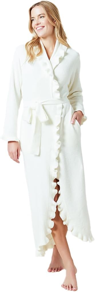 Softies Women's Ultra Soft Ruffle Ankle-Length Chenille Robe, Lightweight, Side Seam Pockets