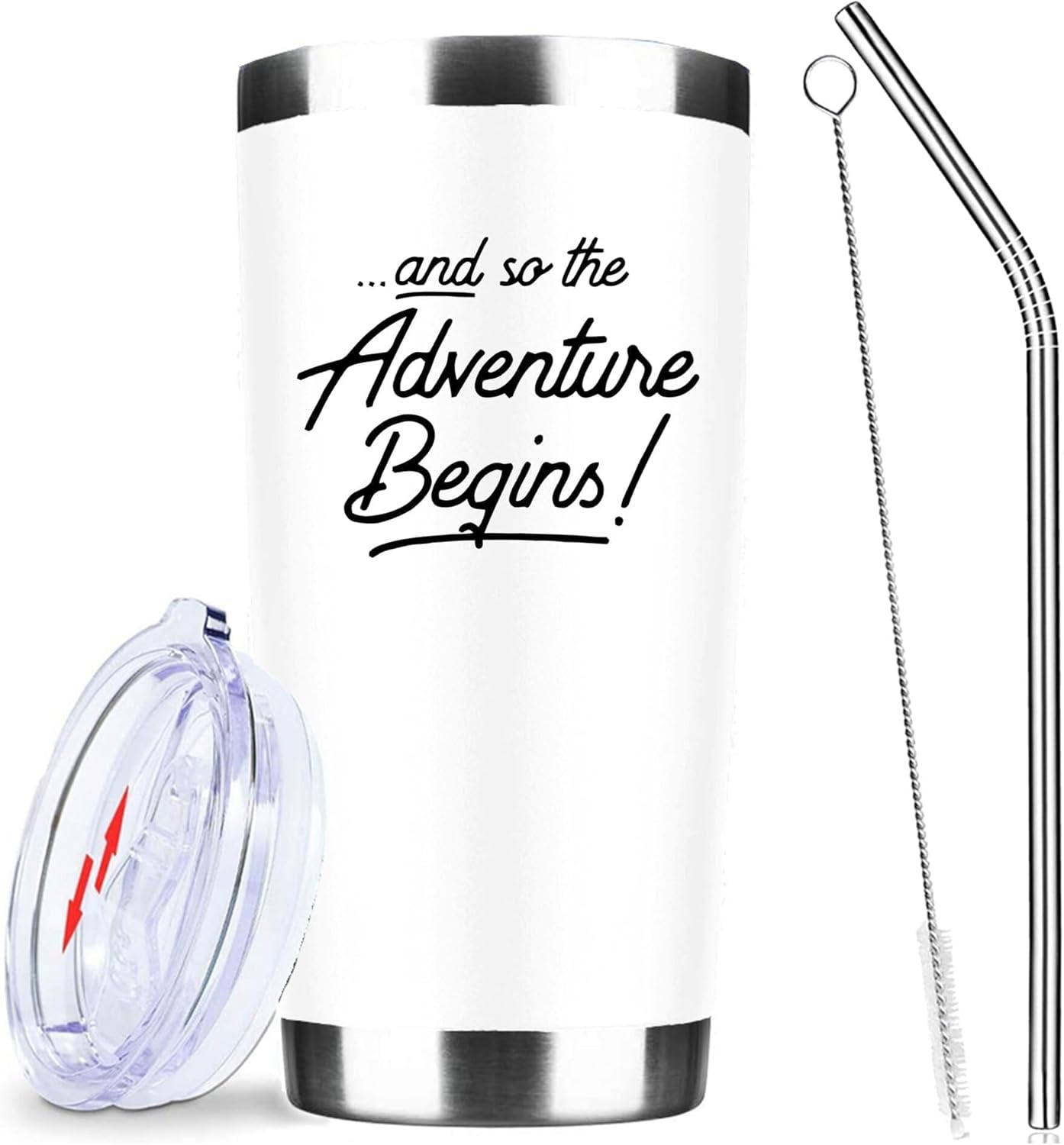 - Celebrate New Beginnings:Imagine gifting this tumbler to a graduate, coworker, or friend about to start a new chapter in life. The uplifting quote “…and so the Adventure Begins!” inspires excitement for the journey ahead.Mark life’s milestones with this “…and so the Adventure Begins!” 20oz insulated tumbler
