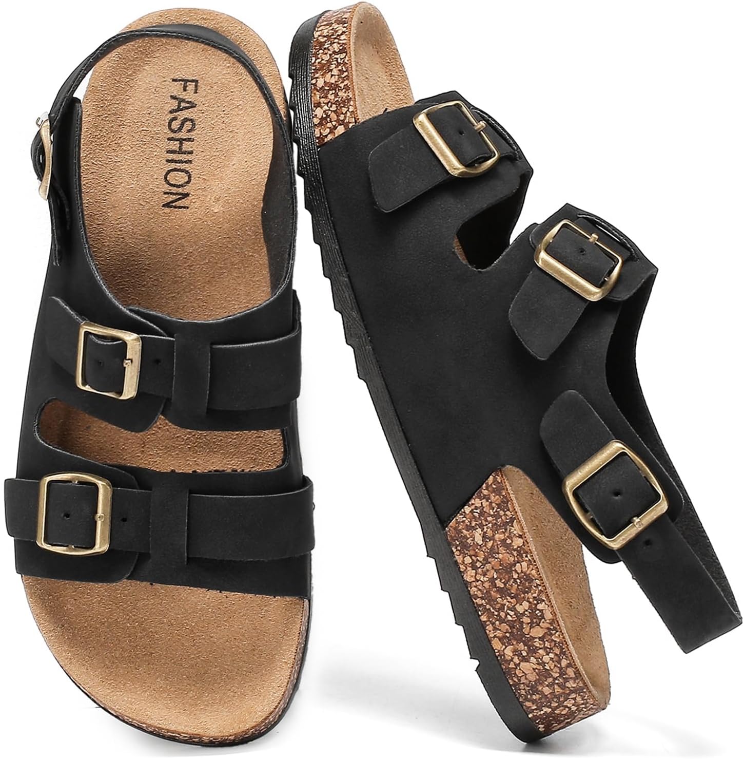 Cork Sandals With Back Strap Double Buckle Footbed Clogs Sandals Women and Men Comfortable Adjustable Ankle Strap Flat Sandal Dressy Open Toe Mules Casual Non Slip Summer Shoes sandalias de mujer