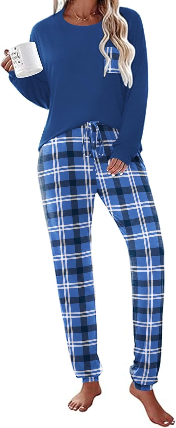 Ekouaer Womens Pajamas Set Long Sleeve Christmas PJ Sets Soft Lounge Set for Women Sleepwear Joggers with Pockets