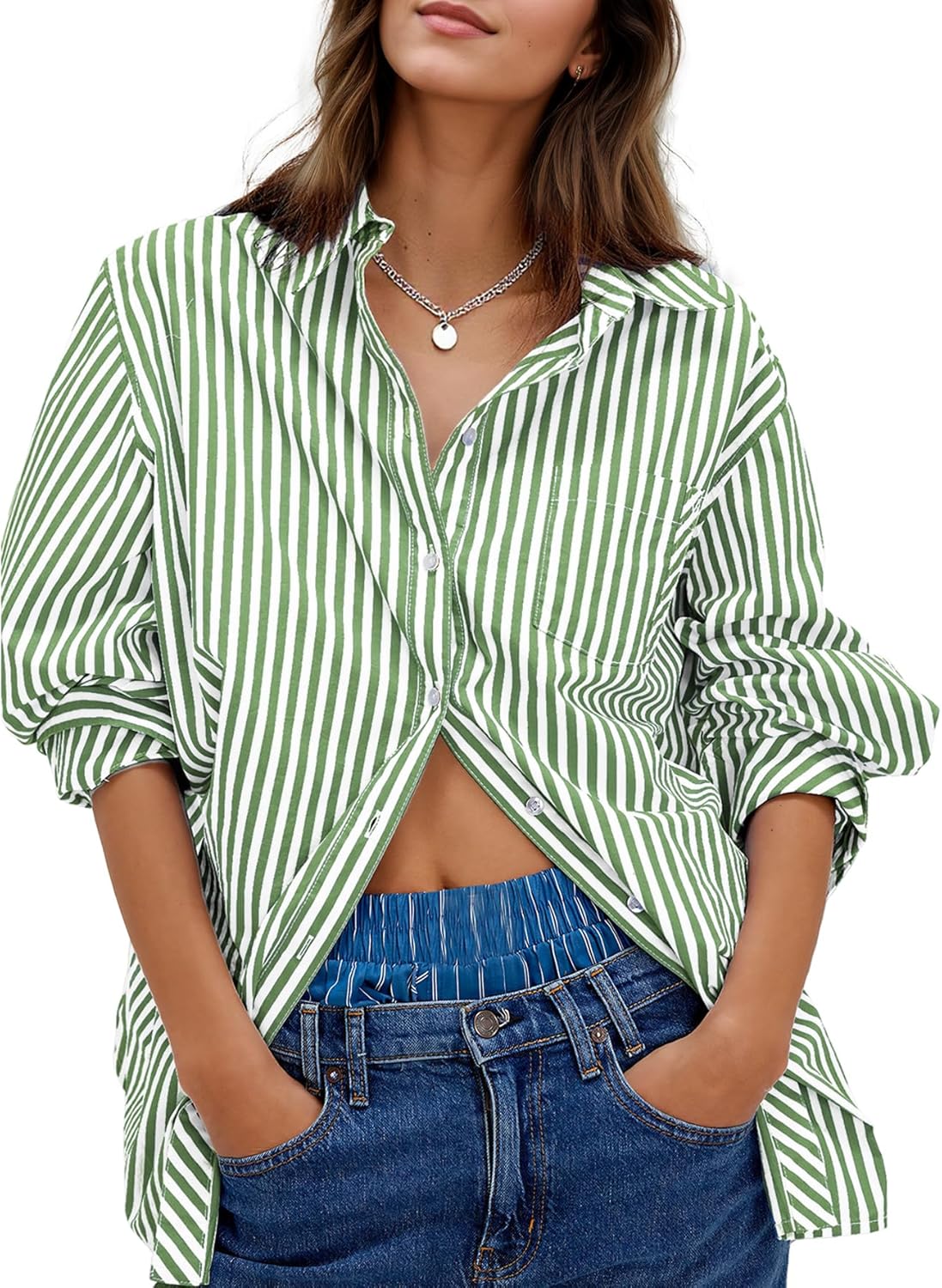 Besshopie Womens Button Down Shirts Stripe Long Sleeve Blouse Casual Work Office Shirt Oversize Tops