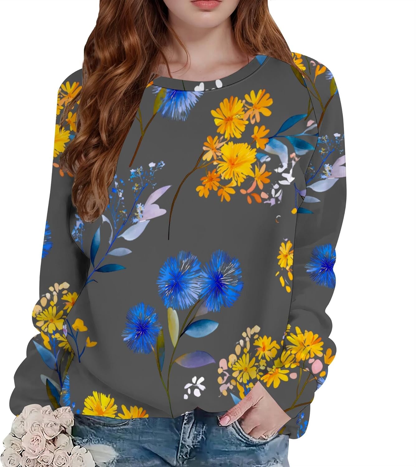 Womens Floral Pullover Sweatshirt Oversized Flower Print Crewneck Tops with Trendy Loose Casual Fall Winter Clothes