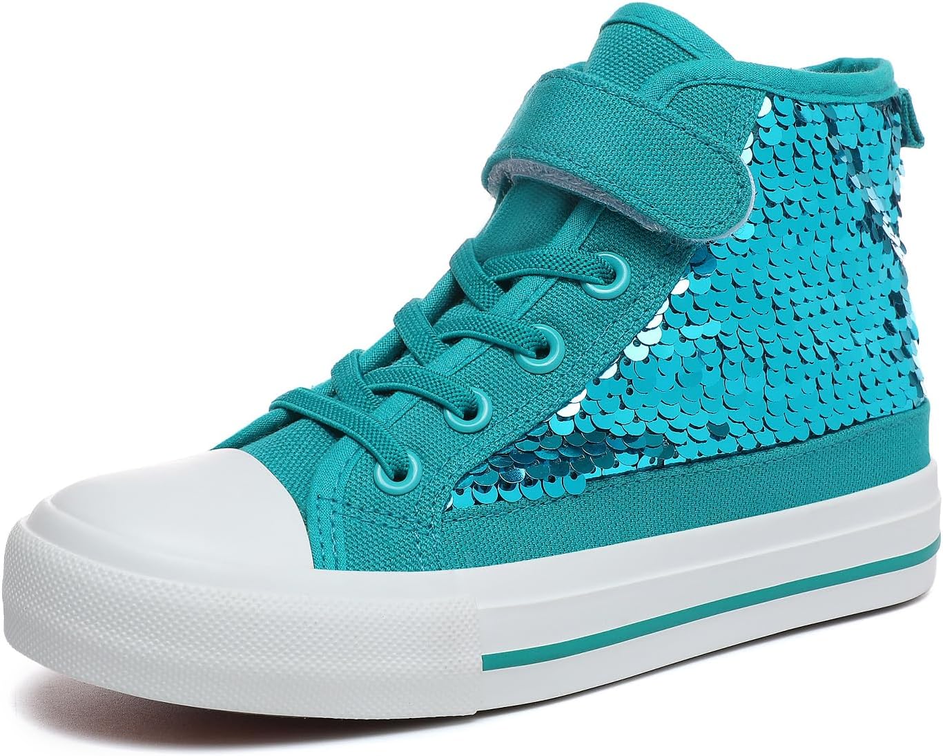 Zoroadke Kids Sparkle Sequins High Top Casual Adjustable Strap Canvas Shoes Girls and Boys Glitter Sneakers