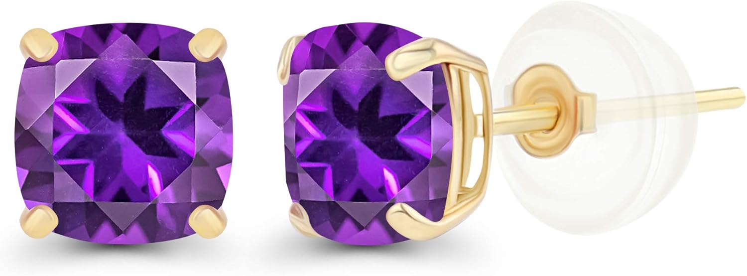 Solid 14K Gold 5mm Cushion Cut Genuine Birthstone Stud Earrings For Women | Hypoallergenic Studs | Natural or Created Gemstone Stud Earrings For Women