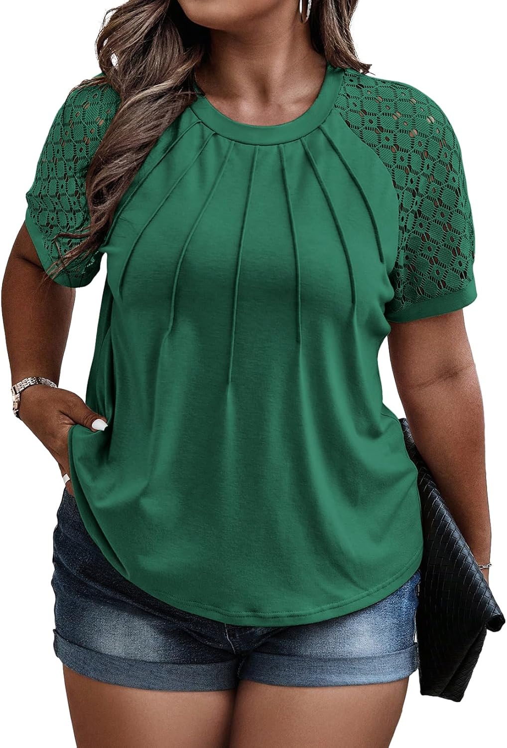Eytino Plus Size Tops for Women Summer Lace Short Sleeve Crewneck Loose Casual Blouse Tunic T Shirts(1X-5X)