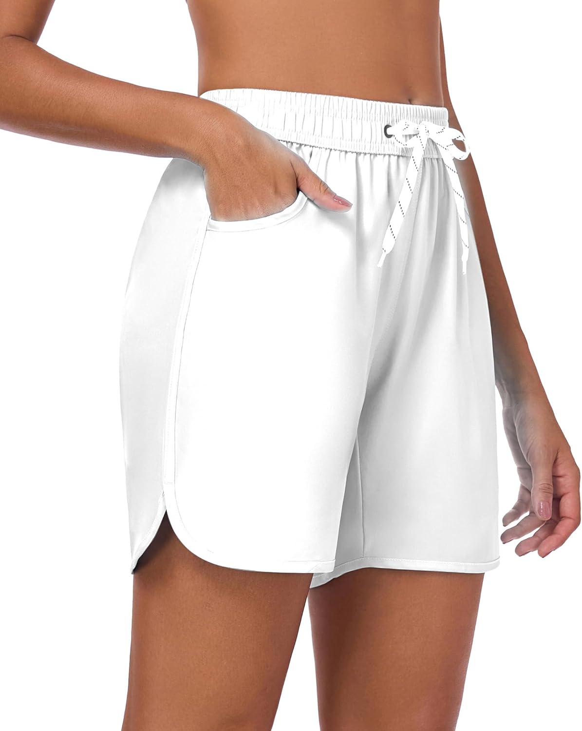 6" Quick Dry Women's Swim Shorts with Pockets, Water Repellent High Waisted Beach Shorts, Without Liner
