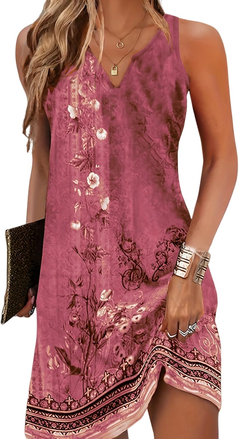 Women's Dresses Elegant Floral Print Dress Sleeveless Sundresses Casual Loose Tank Sun Dresses