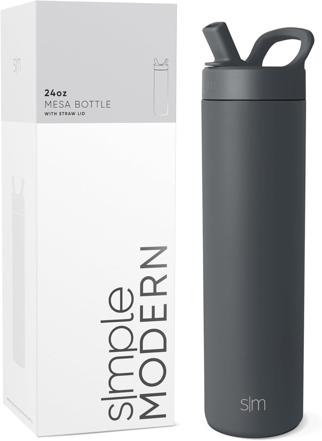 Simple Modern Water Bottle with Straw lid | Insulated Stainless Steel Thermos | Reusable Travel Water Bottles for Gym & Sports | Leak Proof & BPA Free | 24oz, Graphite