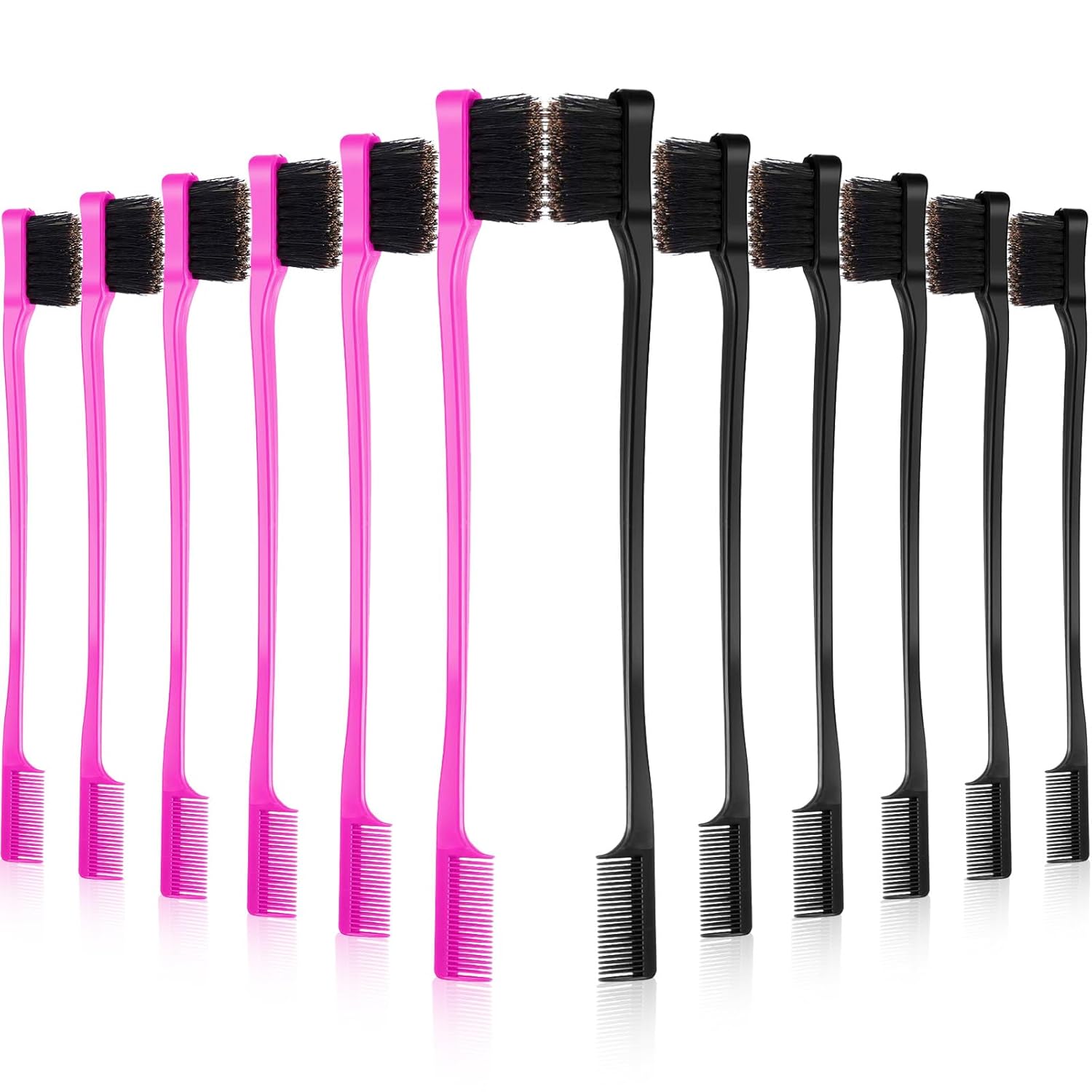 BBTO 10 Pcs Edge Brush 2-in-1 Double Sided Hair Edges Brushes and Combs Combo Pack, Smooth Grooming and Edge Control (Rose and Black)