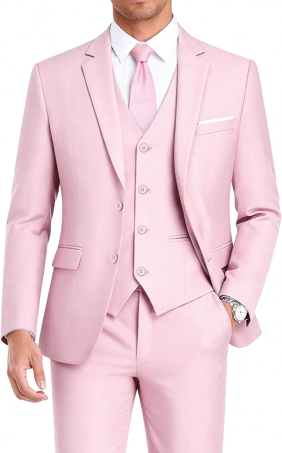 WEEN CHARM Men's 3-Piece Slim Fit Suit Set-2-Button Blazer,Vest & Pants-Formal Wedding,Prom,Party & Business Tuxedo