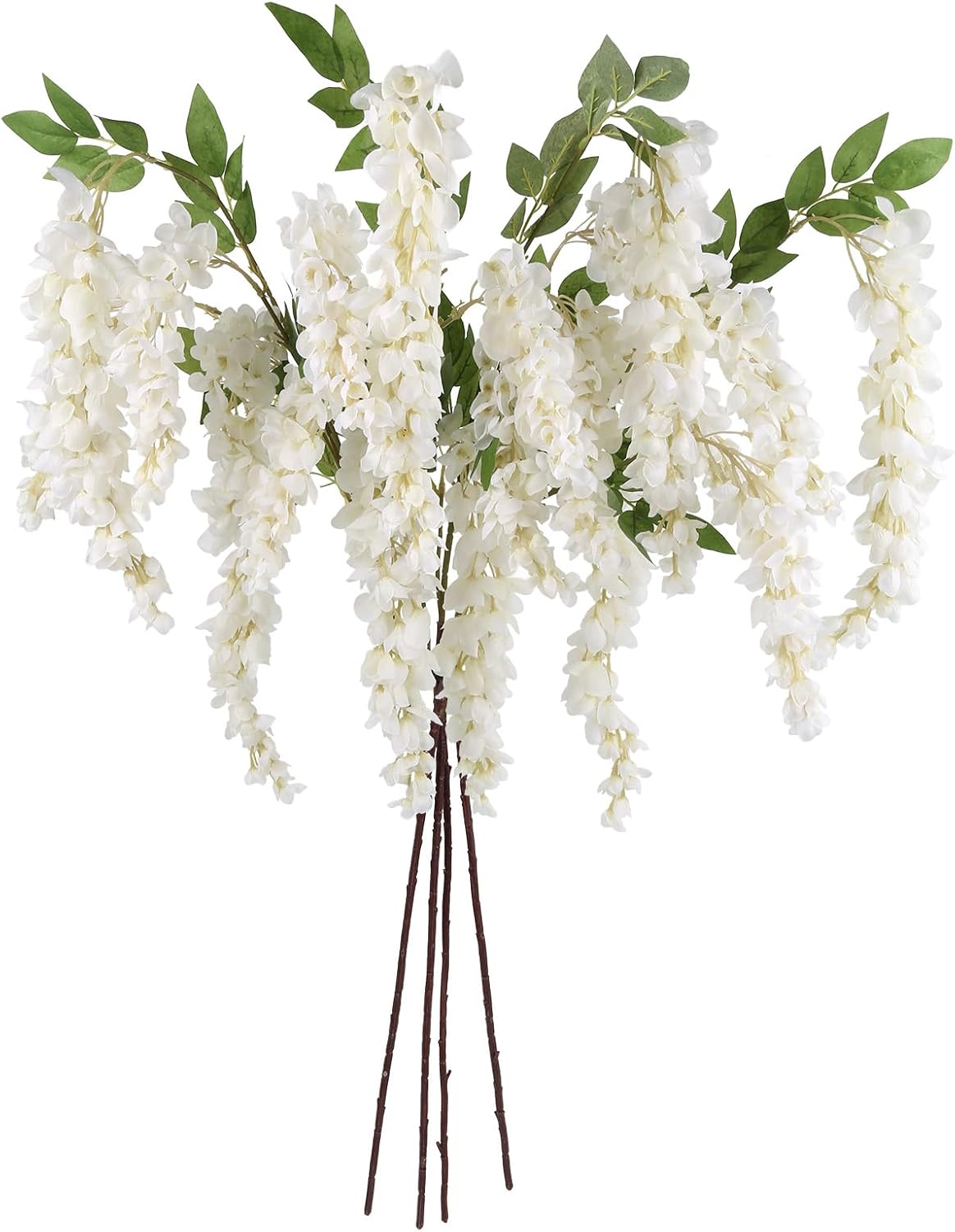 IPOPU 3.9FT Wisteria Artificial Flowers, 4PCS Wisteria Hanging Flowers, Silk White Flower with Long Stem for Tall Vase Filling Wedding Wall Backdrop Centerpieces Home Decoration (White)