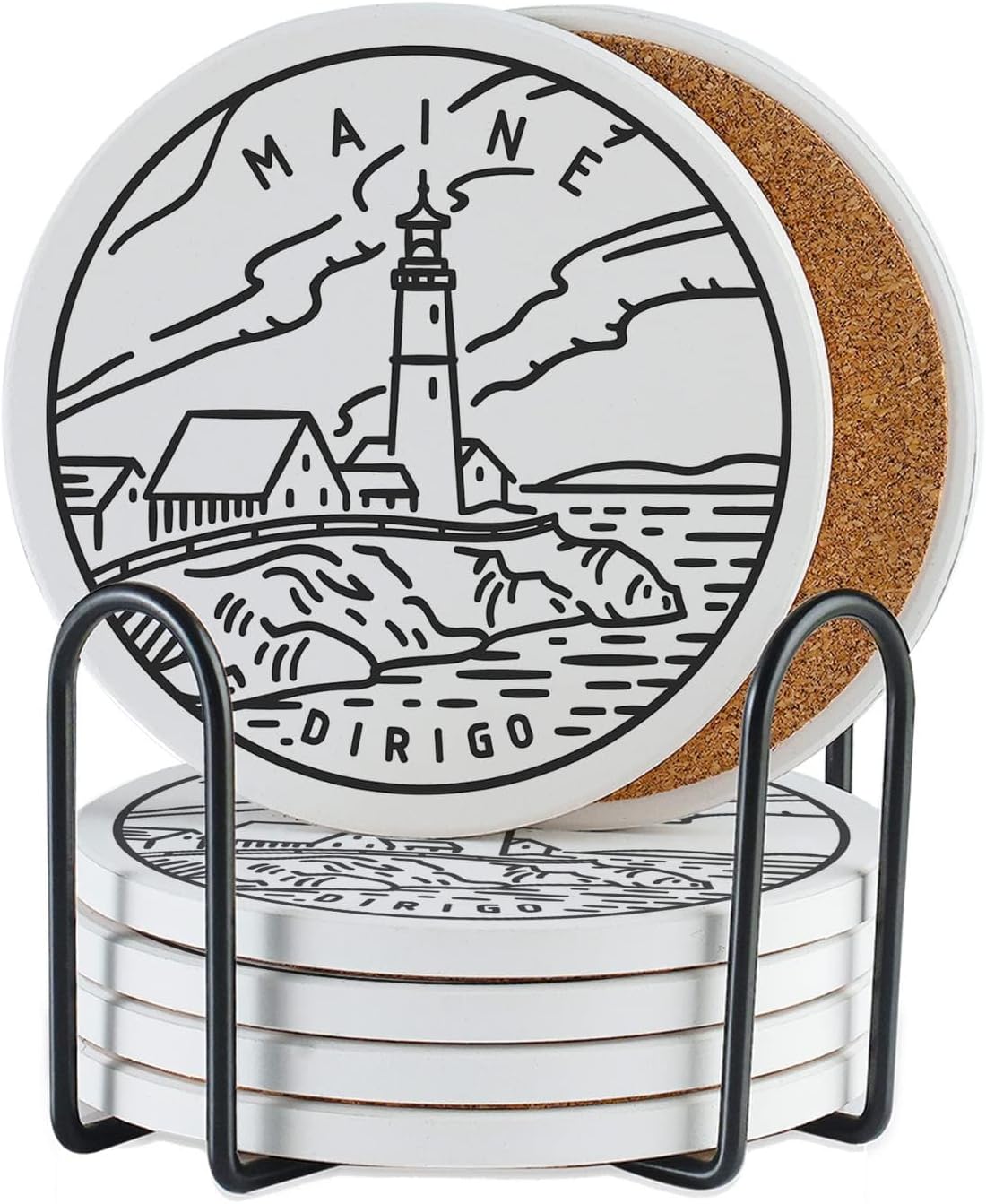 Onebttl Maine Gifts Coaster Souvenir, Travel Homesick Gifts, Home Decor for Women, Moving, Housewarming, Set of 6, Ceramic, Absorbent with Cork Base