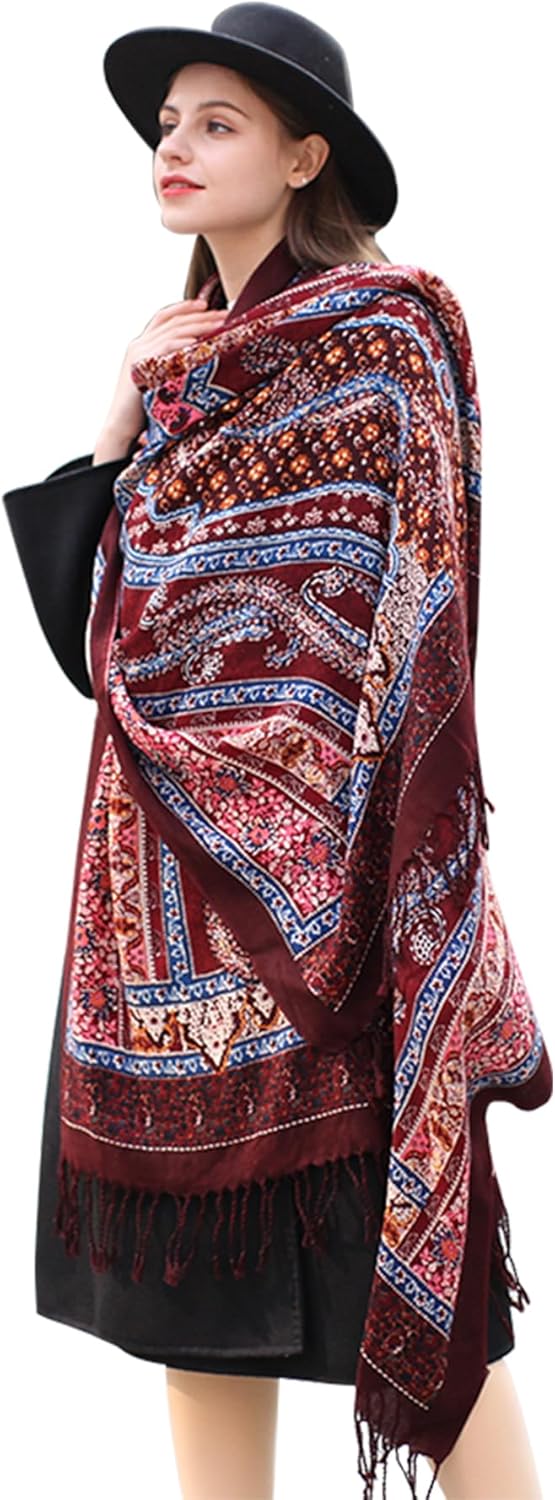 DANA XU 100% Merino Wool Extra Large Pashmina Blanket Travel Scarf Cashmere Wrap for Women Fall Winter Oversize Shawl Floral