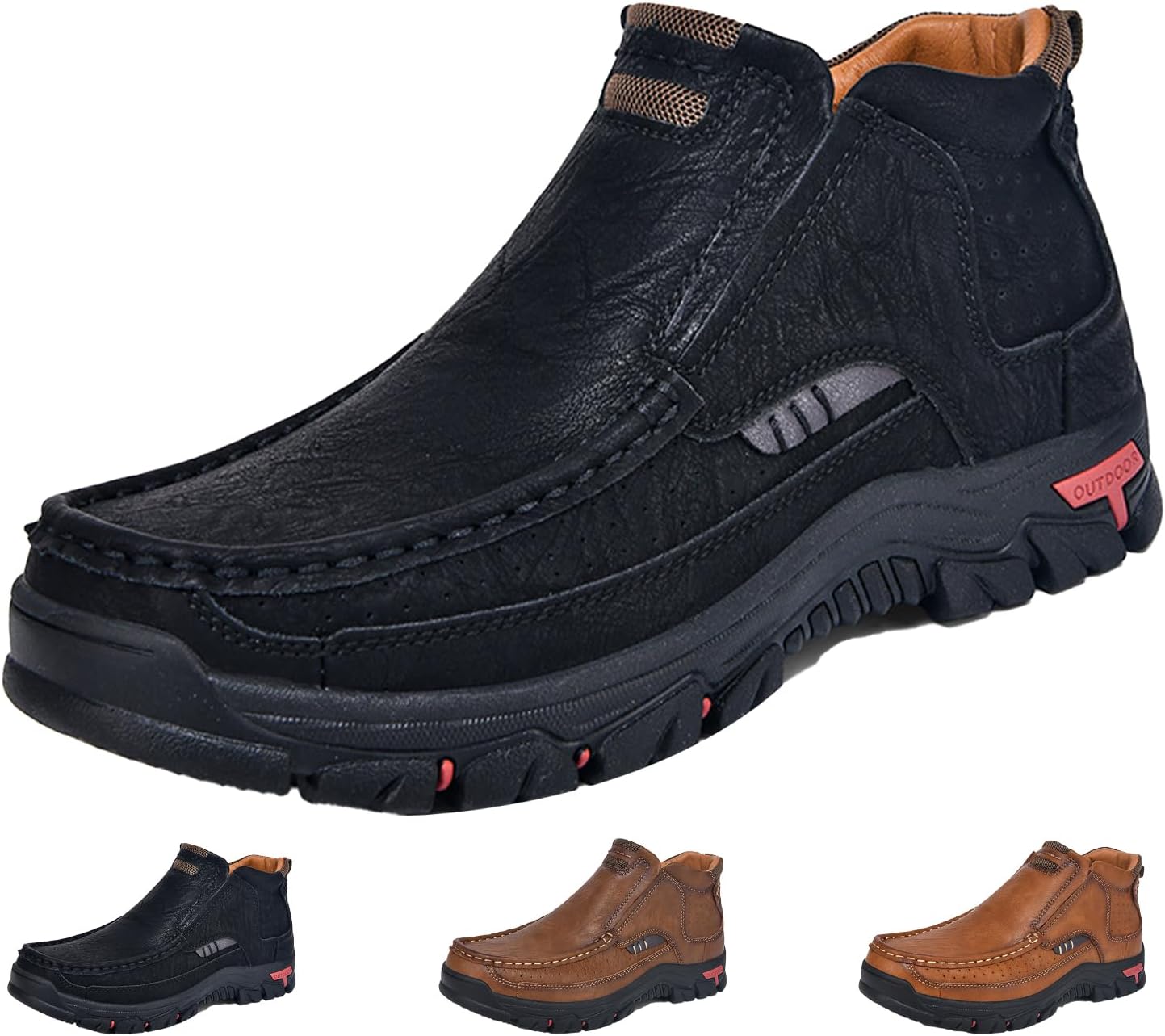 Men's Mid-top Outdoor Chukka Boots,Vintage Hand-Stitching Leather Arch Support Non-Slip Slip On Hiking Casual Shoes