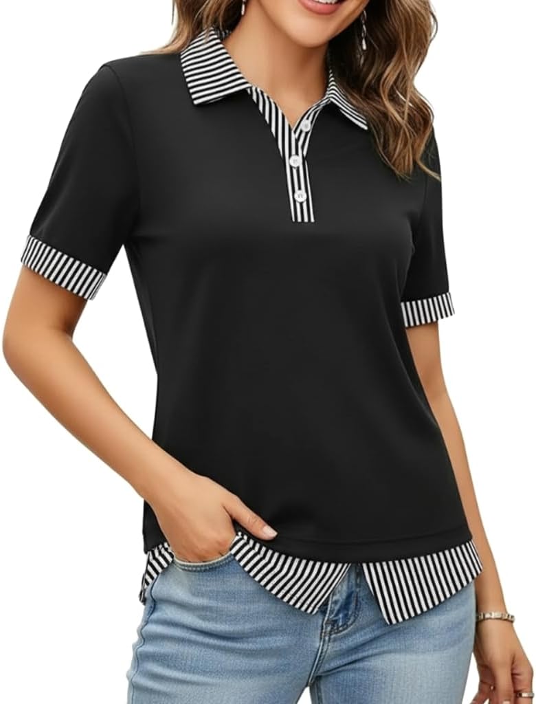 Disamer Womens Summer Tops Spring Fashion 2026 Short Sleeve Shirts Patchwork Button V Neck Tunic Tops Casual Work Blouses
