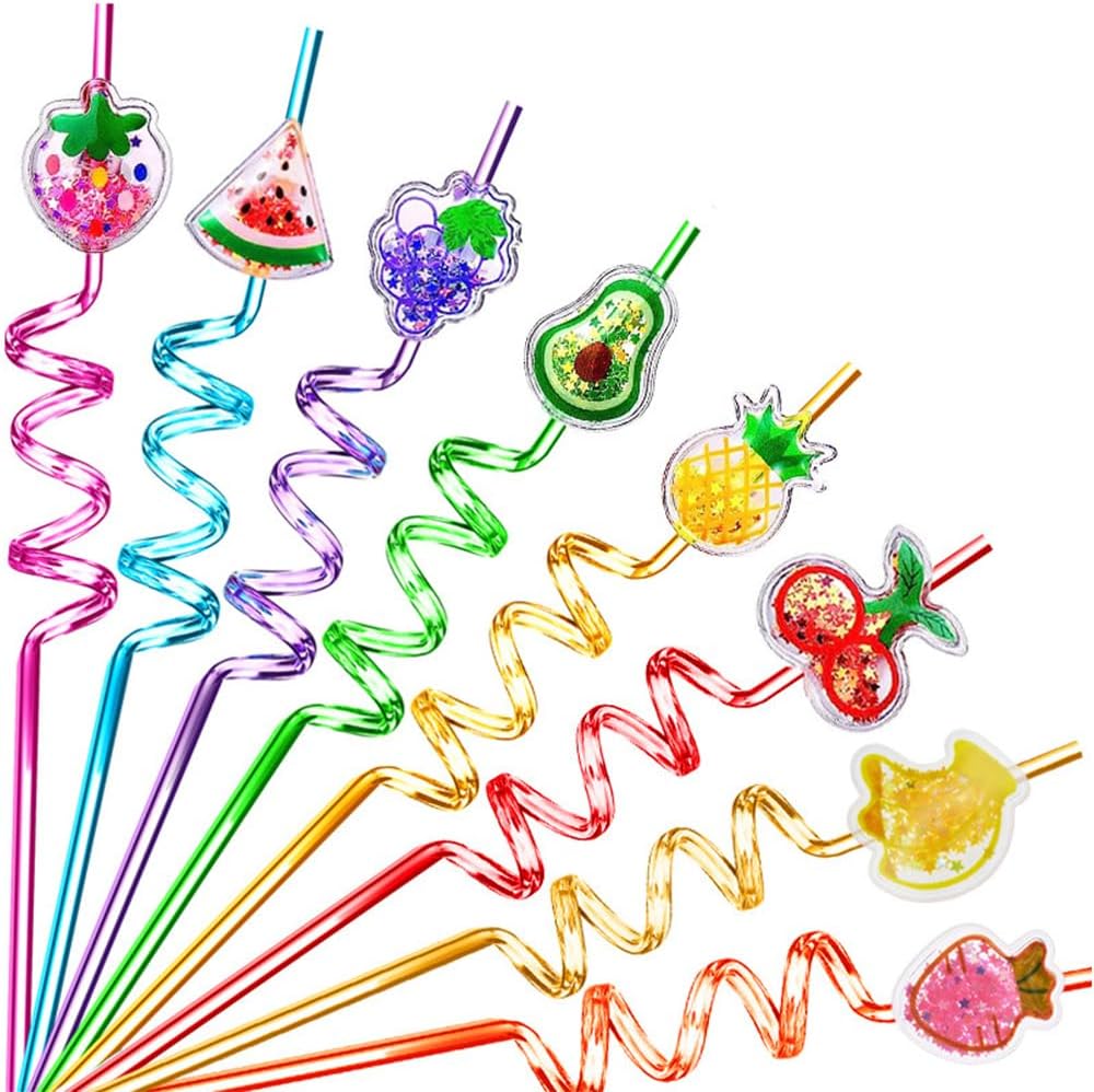 - UNIQUE DESIGN: You will get 24 pieces glitter fruit curling straws in 8 different design styles, 3 straws in each style, 8 color, attractive and creative, suitable for adults. The variety of colors can satisfy anyone who loves crazy colorful straws