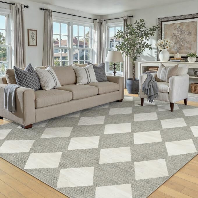 6x9 Checkered Area Rugs for Living Room Grey Machine Washable Large Rug Non-Slip Stain Resistant Low Pile Boho Accent Indoor Throw Carpet for Bedroom Dining Room Classroom