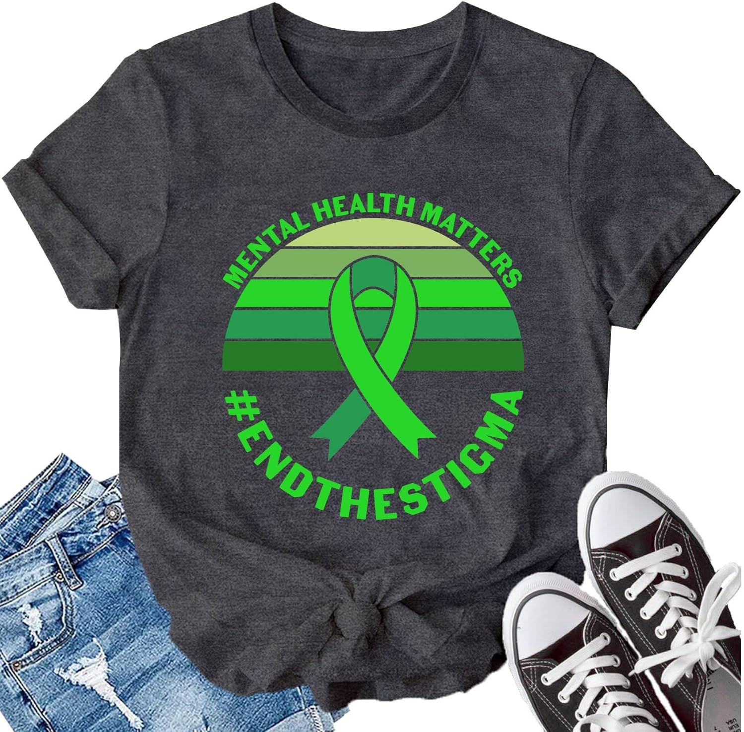 LBP Womens Green Ribbon Shirt Mental Health Matters End The Stigma T-Shirt Green Ribbon Activist Tee Tops