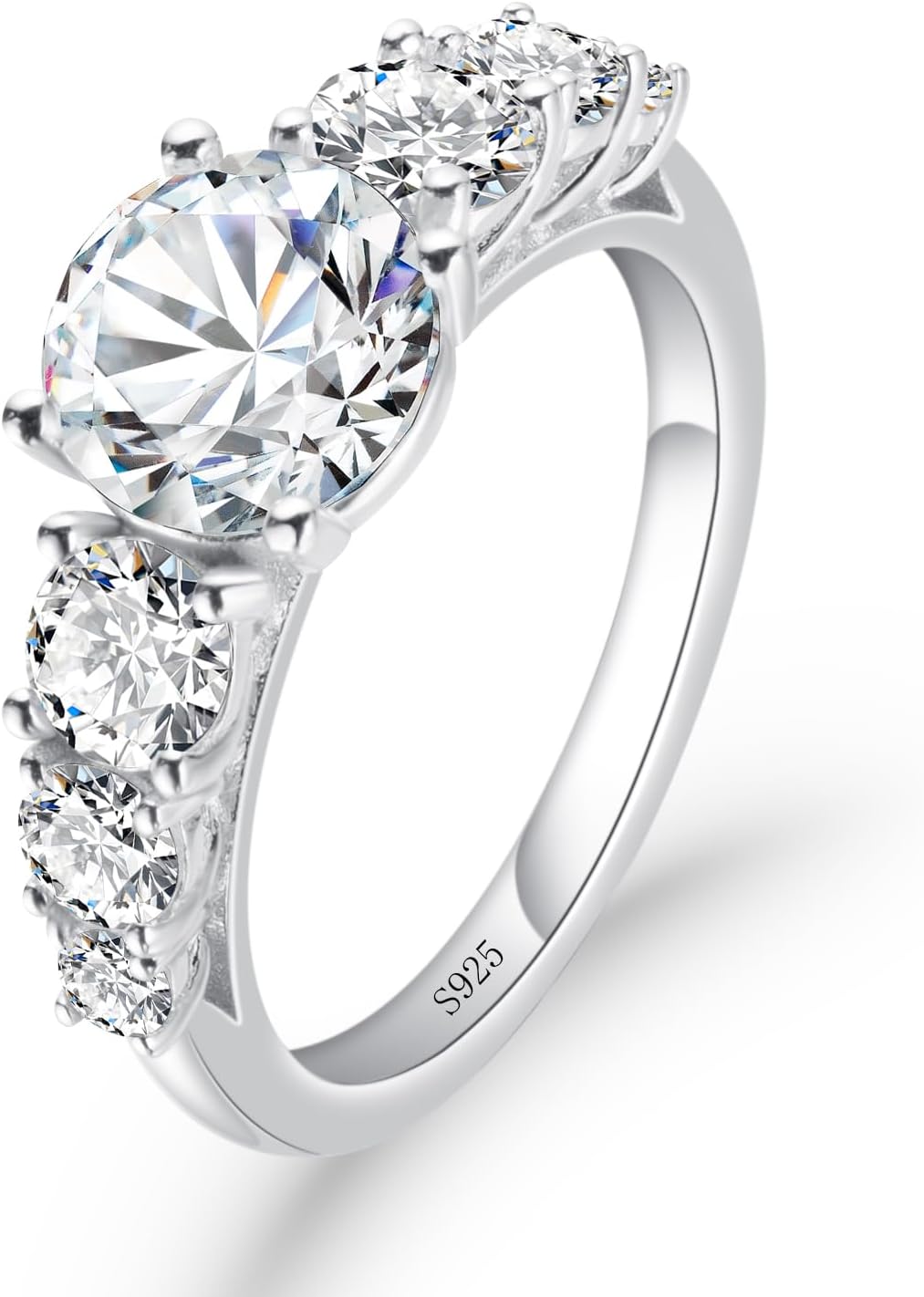 Round Cut Moissanite 7 Stone Engagement Rings Center Stone 2ct D Color VVS1 18k Gold Plated 925 Sterling Silver Anniversary Wedding Promise Ring for Women