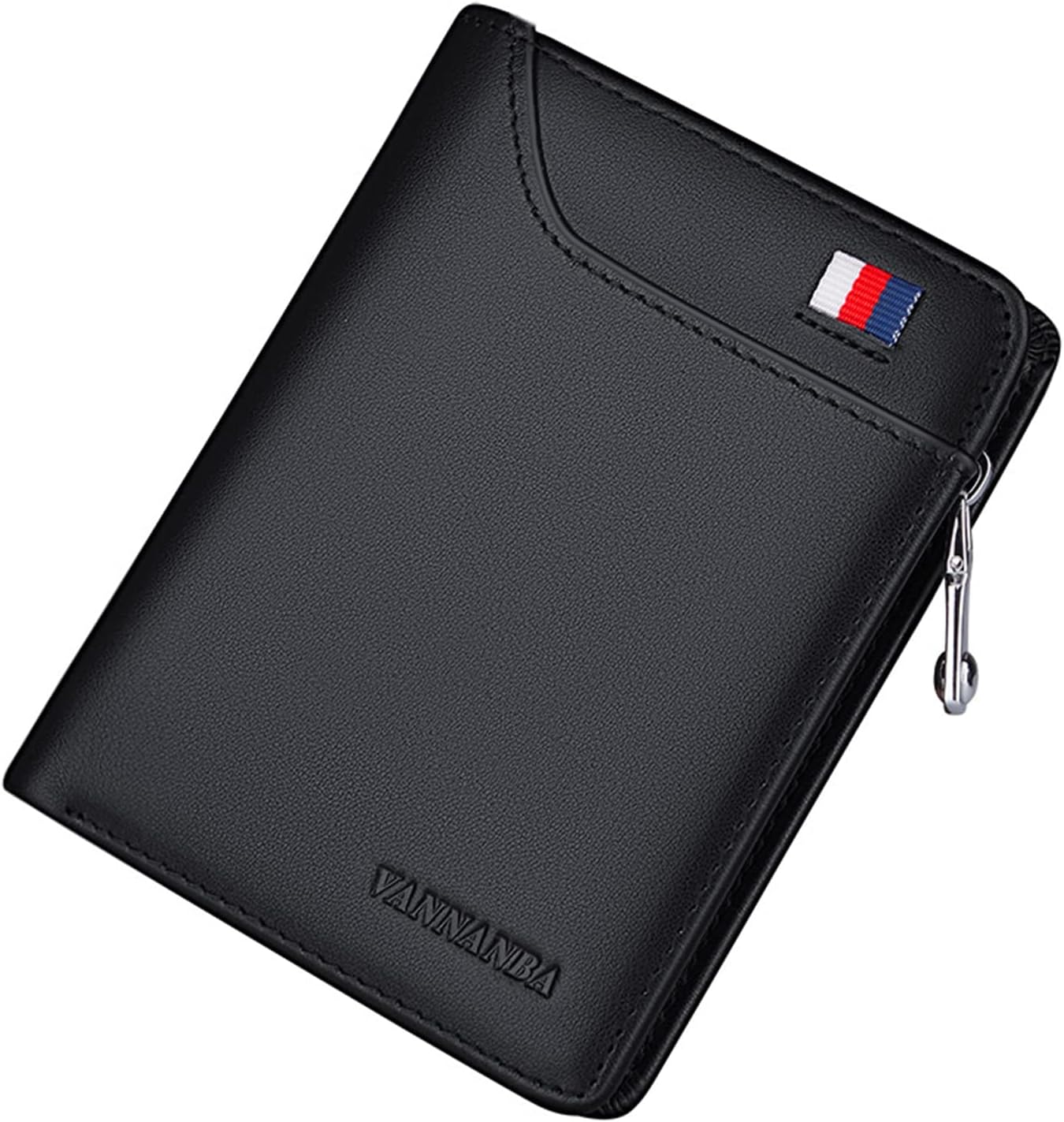 VANNANBA Small Wallet with Zipper Genuine Leather RFID Blocking Credit Card Wallet with Coin Pocket Bifold Wallets, Gift for Men(Black)