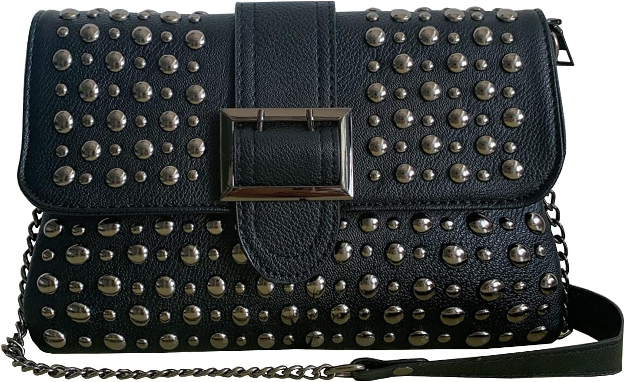 Women Ladies Punk Rivet Purse Satchel PU Leather Shoulder Crossbody Top-handle Bag Tote Handbag Black