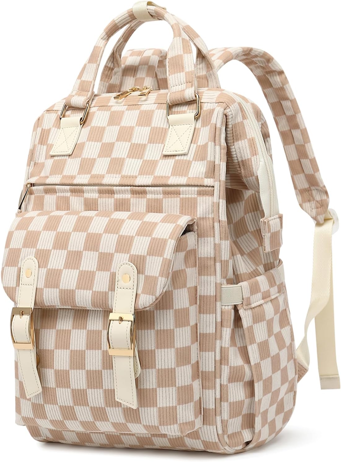 Laptop Backpacks for Women, Corduroy High School College Bookbag 15.6 Inch Laptop Bags for Girls Travel Daypack - Checkered Brown