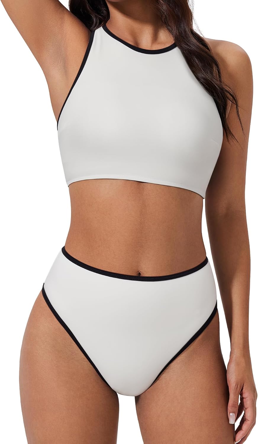 SUUKSESS Women High Waisted Bikini Sets High Neck Sporty Two Piece Swimsuits