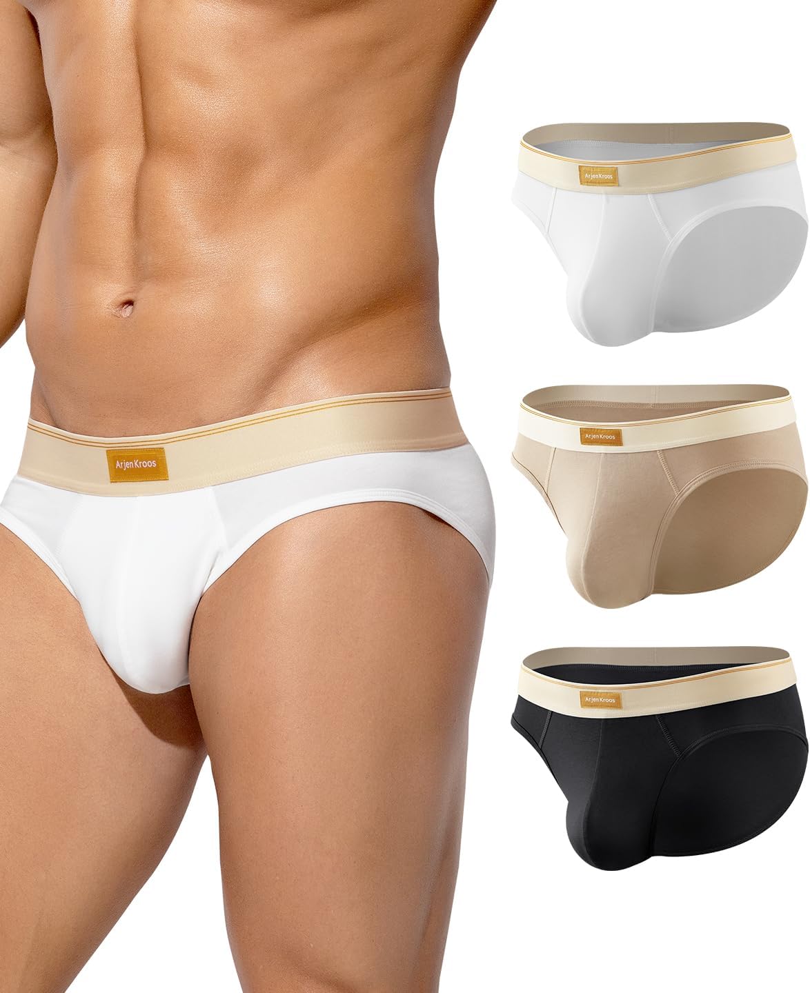 Arjen Kroos Men's Cotton Briefs Low Rise Breathable Pouch Underwear Underpants 3 Pack