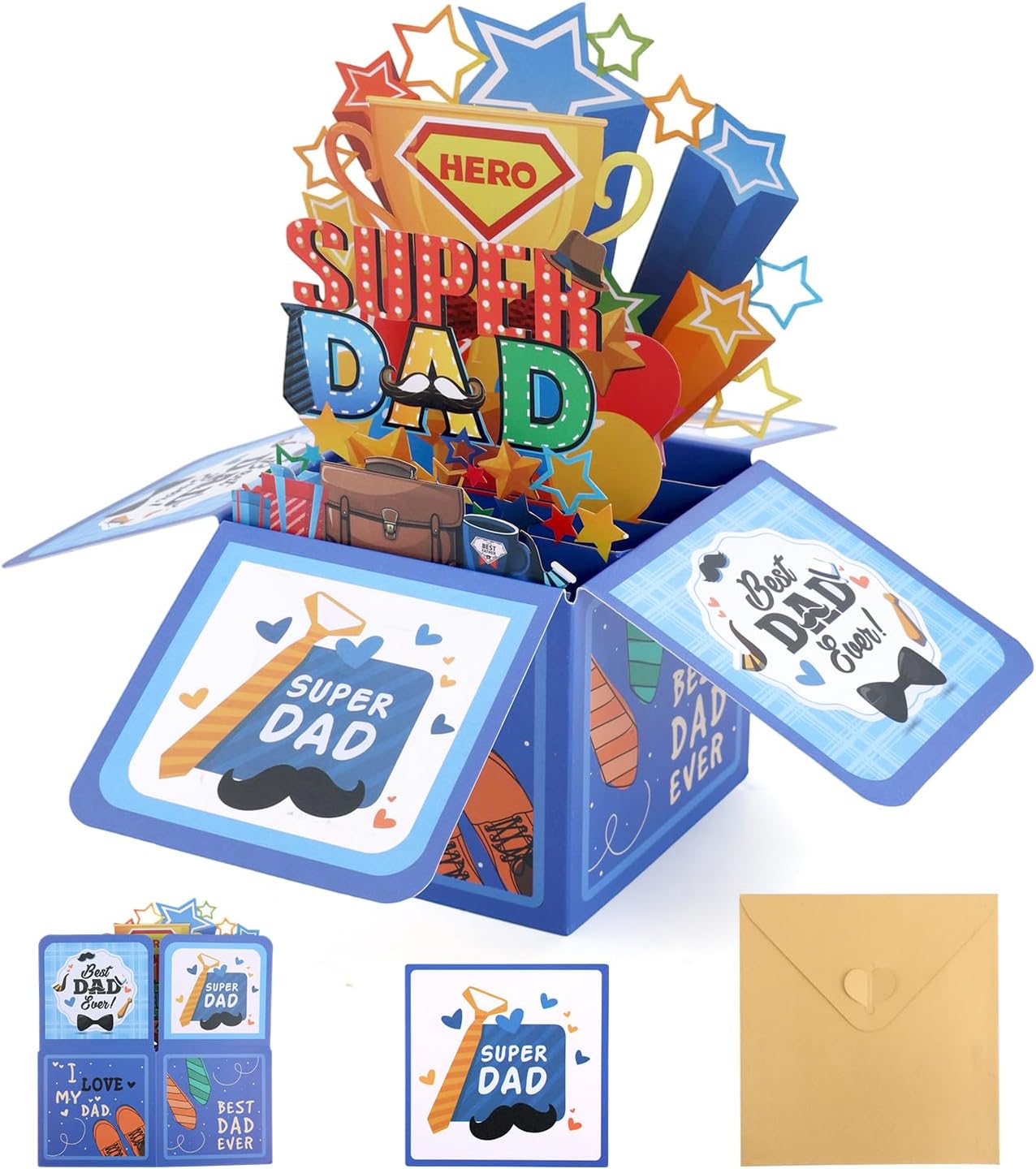 3D Super Dad Pop Up Card, Creative Gift Box with Envelope Message Card Perfect Greeting for Fathers Stepdads Grandfathers and Special Men in Your Life