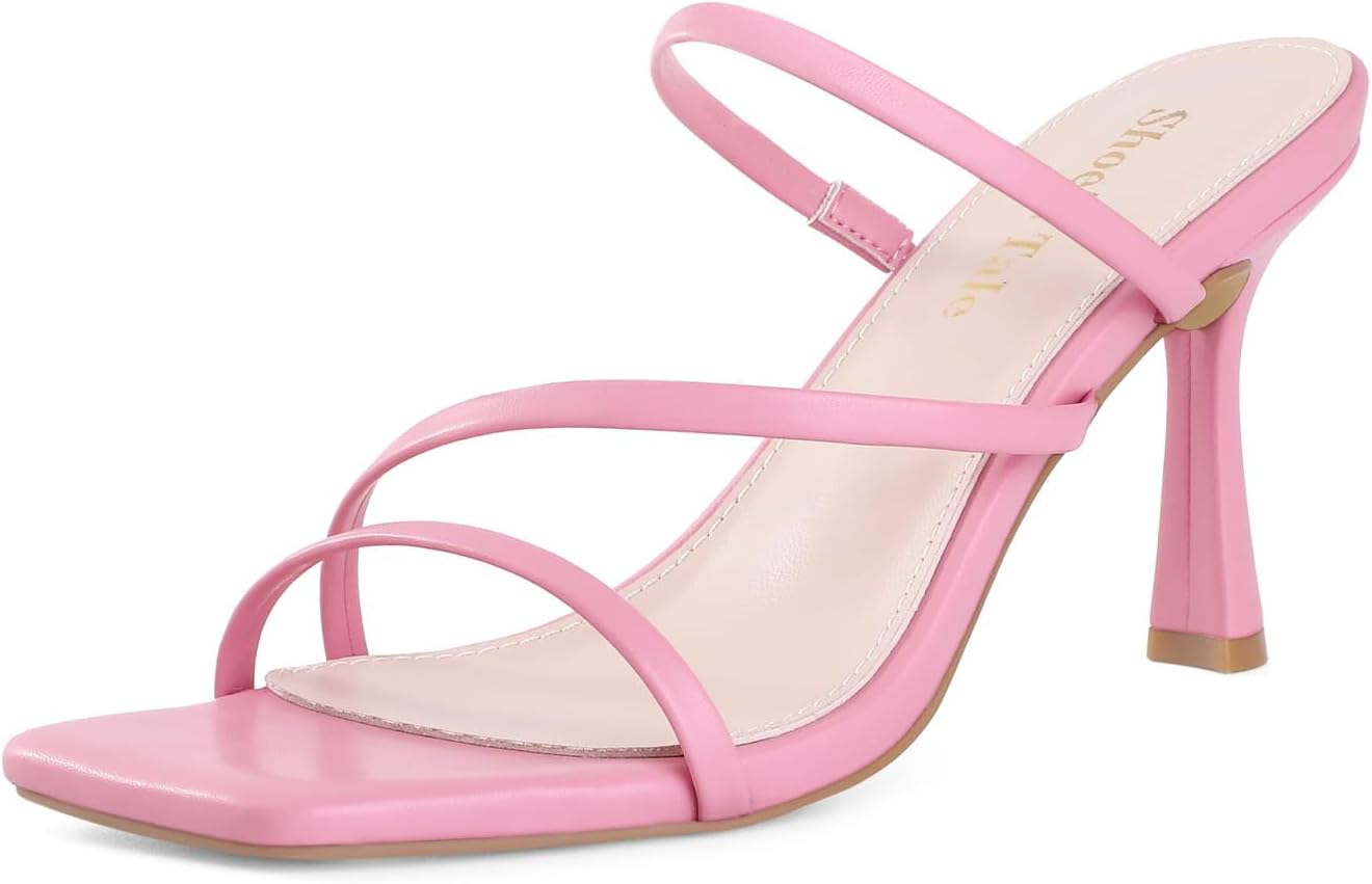 Shoe'N Tale Strappy Kitten Heels For Women Stiletto Mules Square Open Toe Slip On Sandals