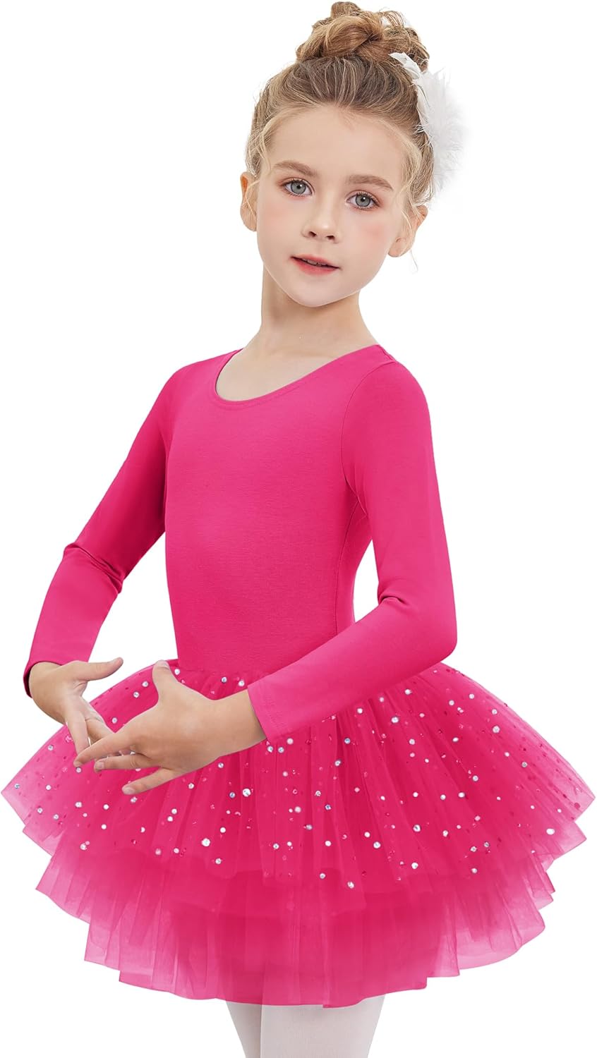 Zaclotre Girls Ballet Leotards 4-Layers Tiered Long Sleeve Dance Tutu Dresses Party Costumes for Ballerina