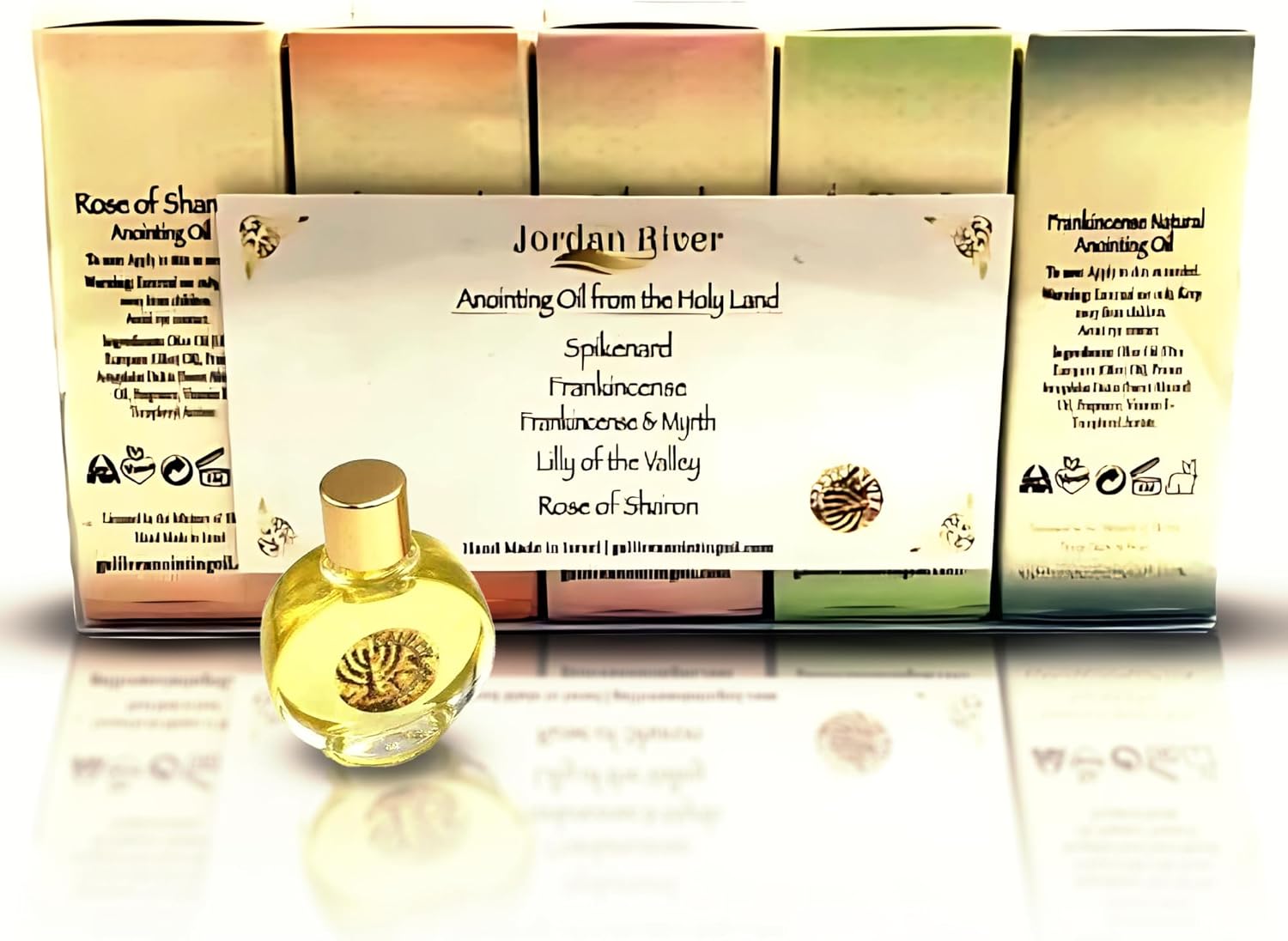 Anointing Oil for Prayer – 5x15ml Holy Oil Bottles from Jerusalem – Rose of Sharon, Spikenard, Lily of The Valley, Myrrh, Frankincense – Blessed Anointed Oils from Israel