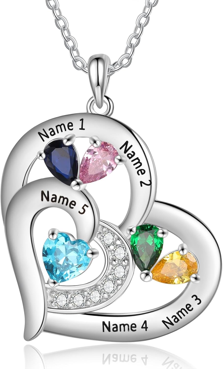 Jewelstruck Mothers Necklace with Birthstone Heart Necklace Personalized Mothers Day Necklace with Names Custom Birthday Christmas Family Gifts for Women Mom Wife Nana
