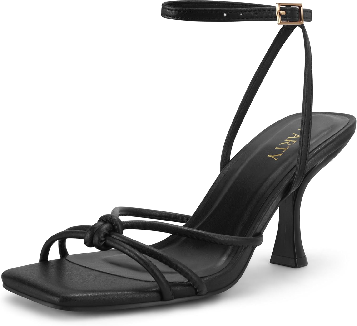 PARTY Women's Square Open Toe Strappy Heeled Sandals 3 inch Stiletto Kitten Heel with Ankle Buckle Strap, Comfortable Slingback Summer Dress Shoes