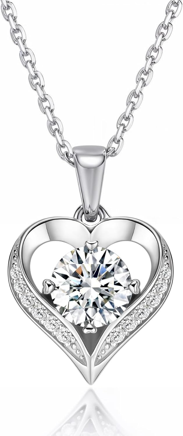 LOVE&LOVE Moissanite Heart Necklace for Women, 1CT / 2CT D Color VVS1 GRA Certified, 18K White Gold Plated 925 Sterling Silver, Engraved LOVE & LOVE, Romantic Jewelry Gift for Her