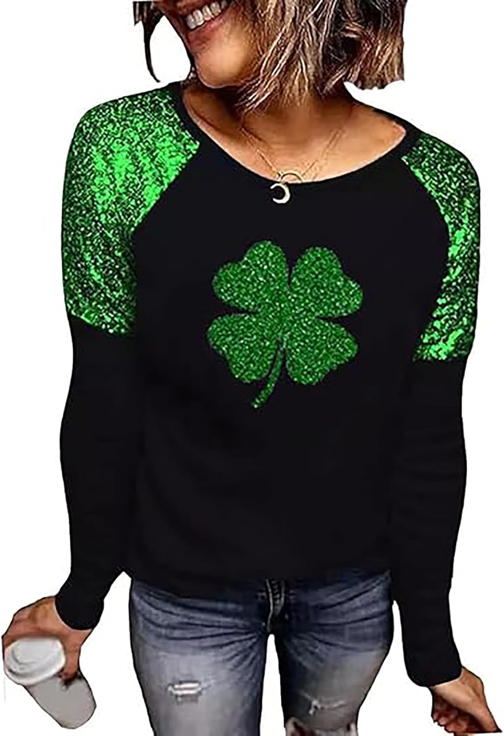 St. Patrick's Day Tshirt Women Lucky Clover Print Irish Shirt Splicing Long Sleeve Raglan Tees Baseball Tops