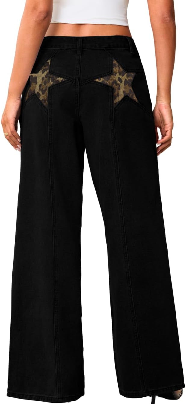Women's Low Rise Baggy Jeans with Star Design, Soft Straight Wide Leg Pants, Lightweight and Comfortable