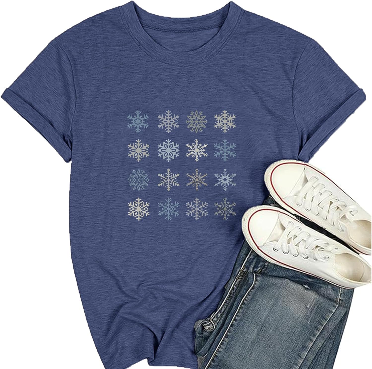 Christmas Shirts for Women Cute Snowflake Graphic T Shirt Casual Short Sleeve Holiday Outfit Tops