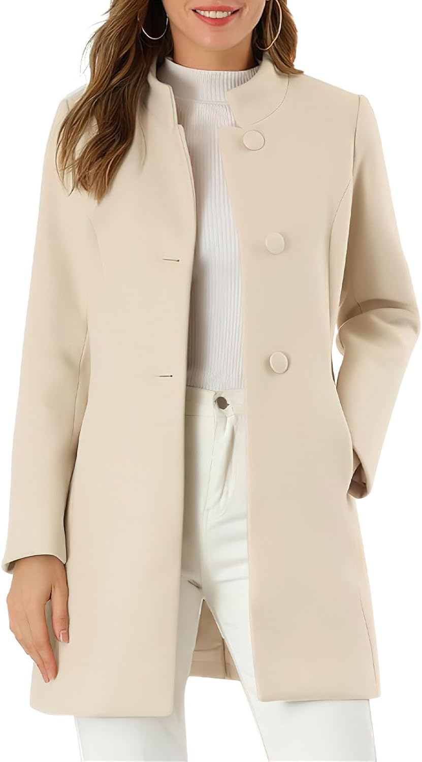 ebossy Women's Casual Stand Collar Single Breasted Wool Pea Coat Back Slit Slim Fit Mid-Long Blazer Coats with Pockets