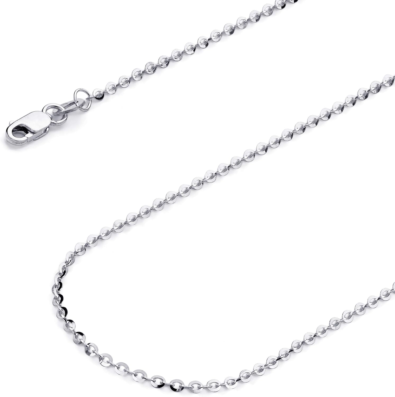 The World Jewelry Center 14k REAL Yellow/White Gold Solid 1.5mm, 1.2mm Side Diamond Cut Rolo Cable Chain Necklace with Lobster Claw Clasp