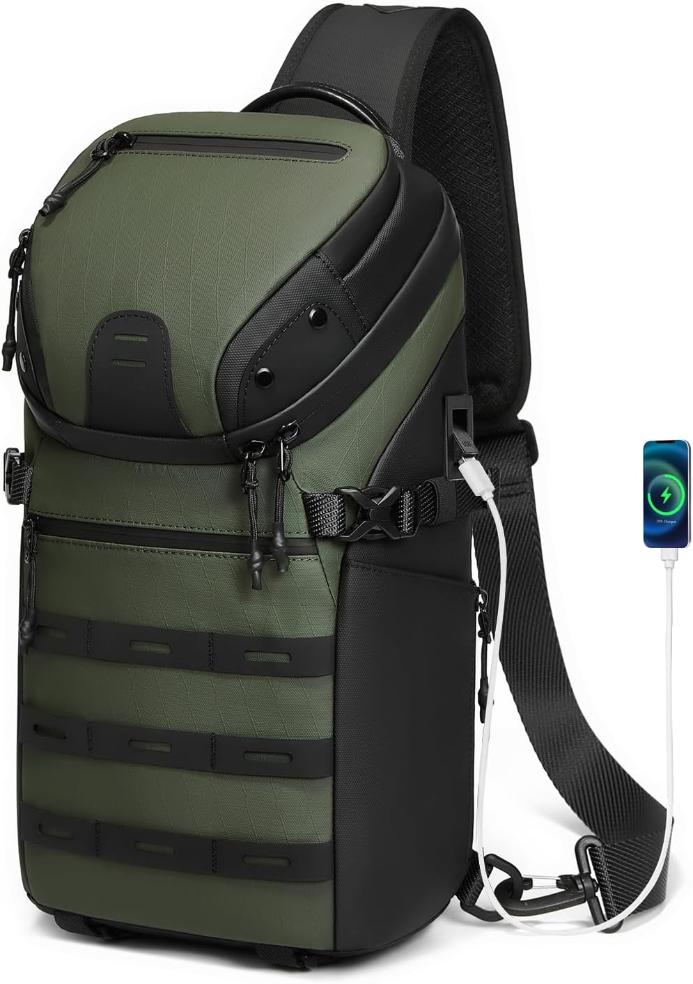 Somago Sling Backpack with USB Charging Port Water-Resistant Tactical Backpack Crossbody Chest Bag with Anti-theft Pocket