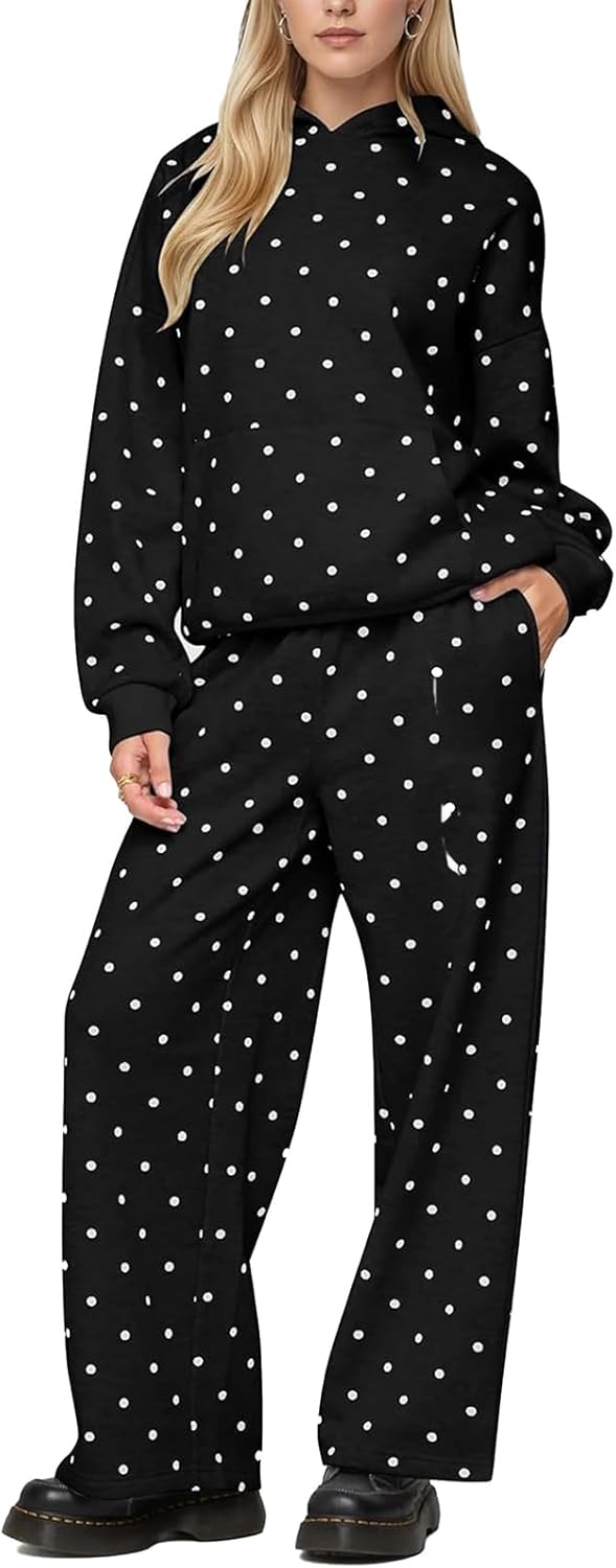 Women 2 Piece Lounge Sets Polka Dot Fall Sweatsuits Long Sleeve Hoodie Wide Leg Sweatpants Matching Tracksuit
