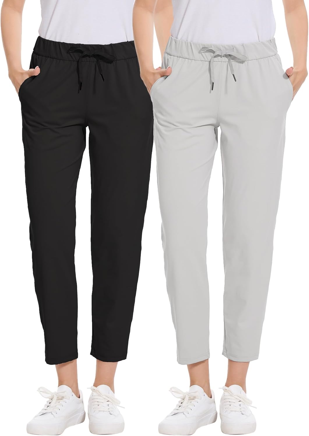 2 Pack Women's Golf Pants with Deep Pockets Stretch 7/8 Ankle Sweatpants for Athletic, Work, Travel, Lounge