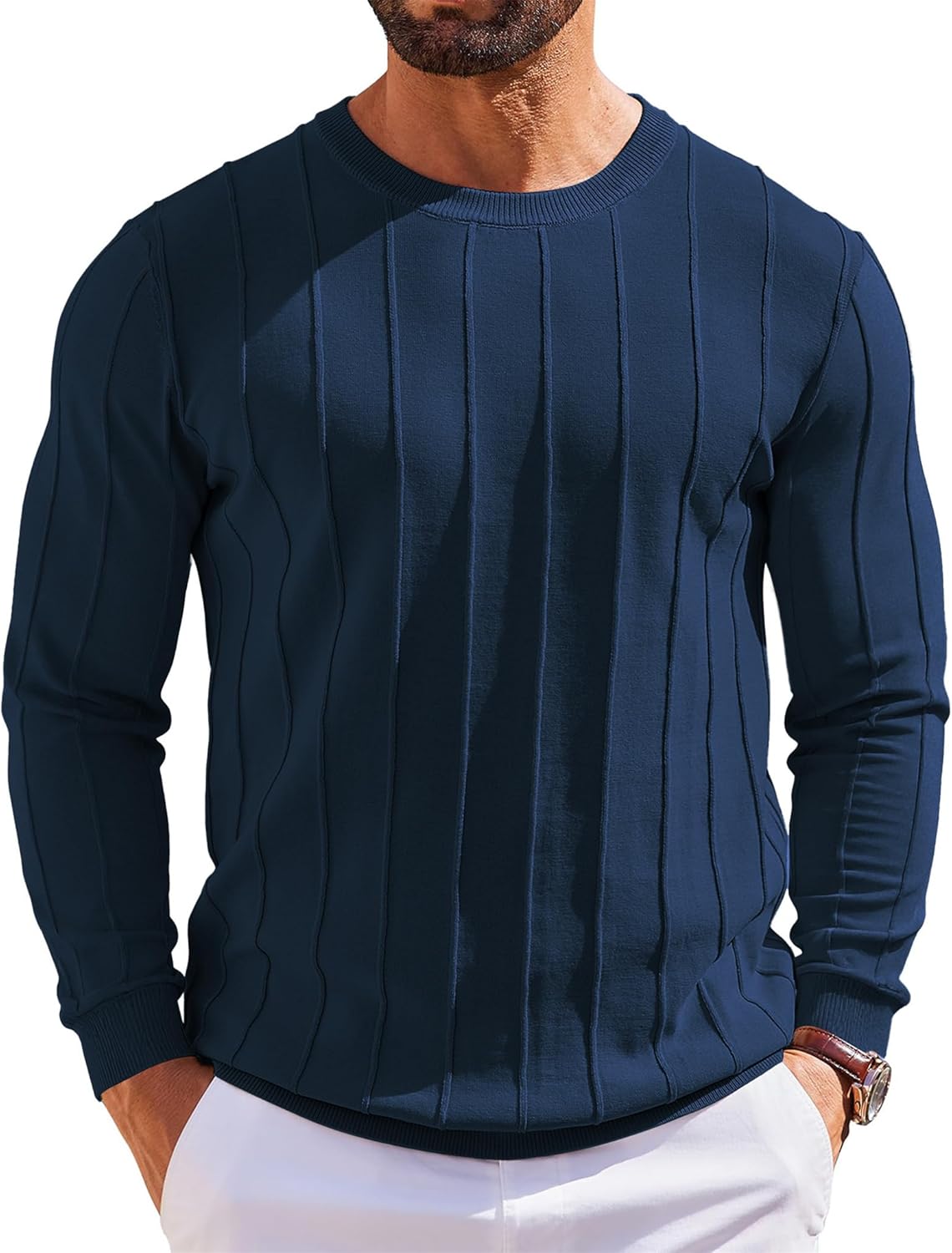 Lexiart Mens Casual Knit Sweater Long Sleeve Crew Neck Thermal Shirts Slim Fit Ribbed Pullover Sweatshirts