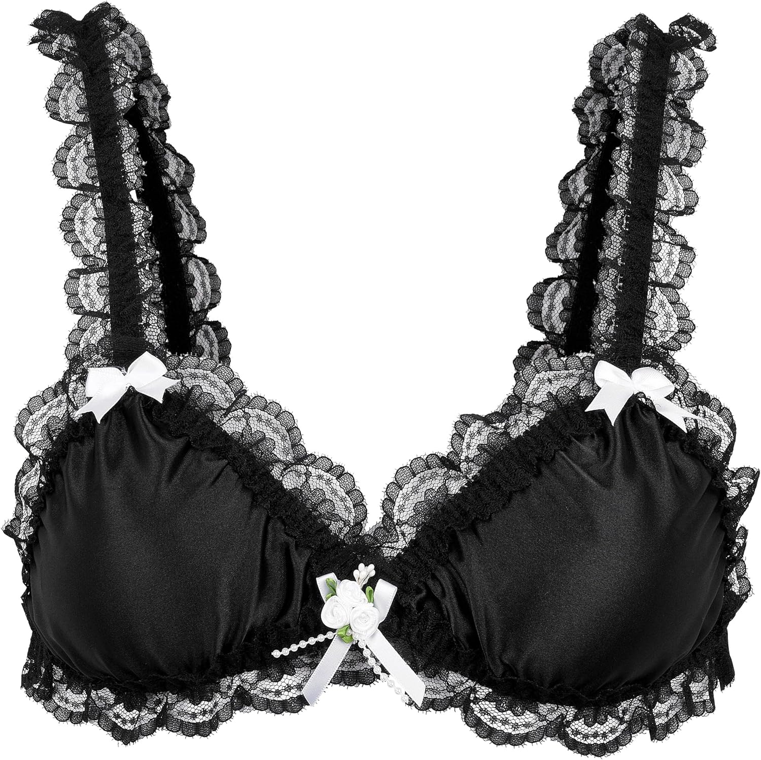Satini Sissy Frilly Lace Fitted Satin Bralette