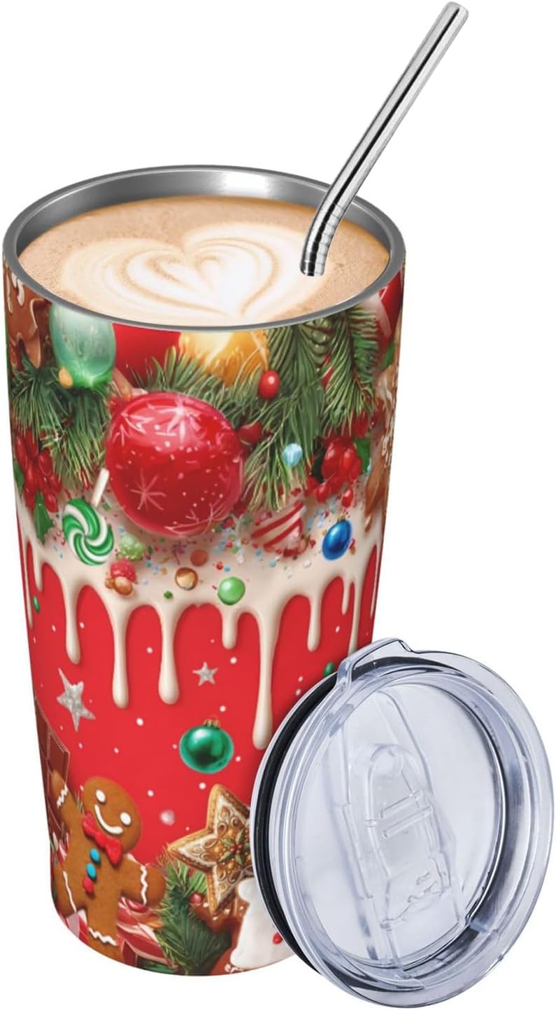 Christmas Tree Candy 20oz Insulated Stainless Steel Tumbler With Lids And Straws Stainless Steel Double Wall Vacuum Insulated Travel Coffee Mug Leak-Proof Lid & Flip Lid For Hot And Cold Drinks