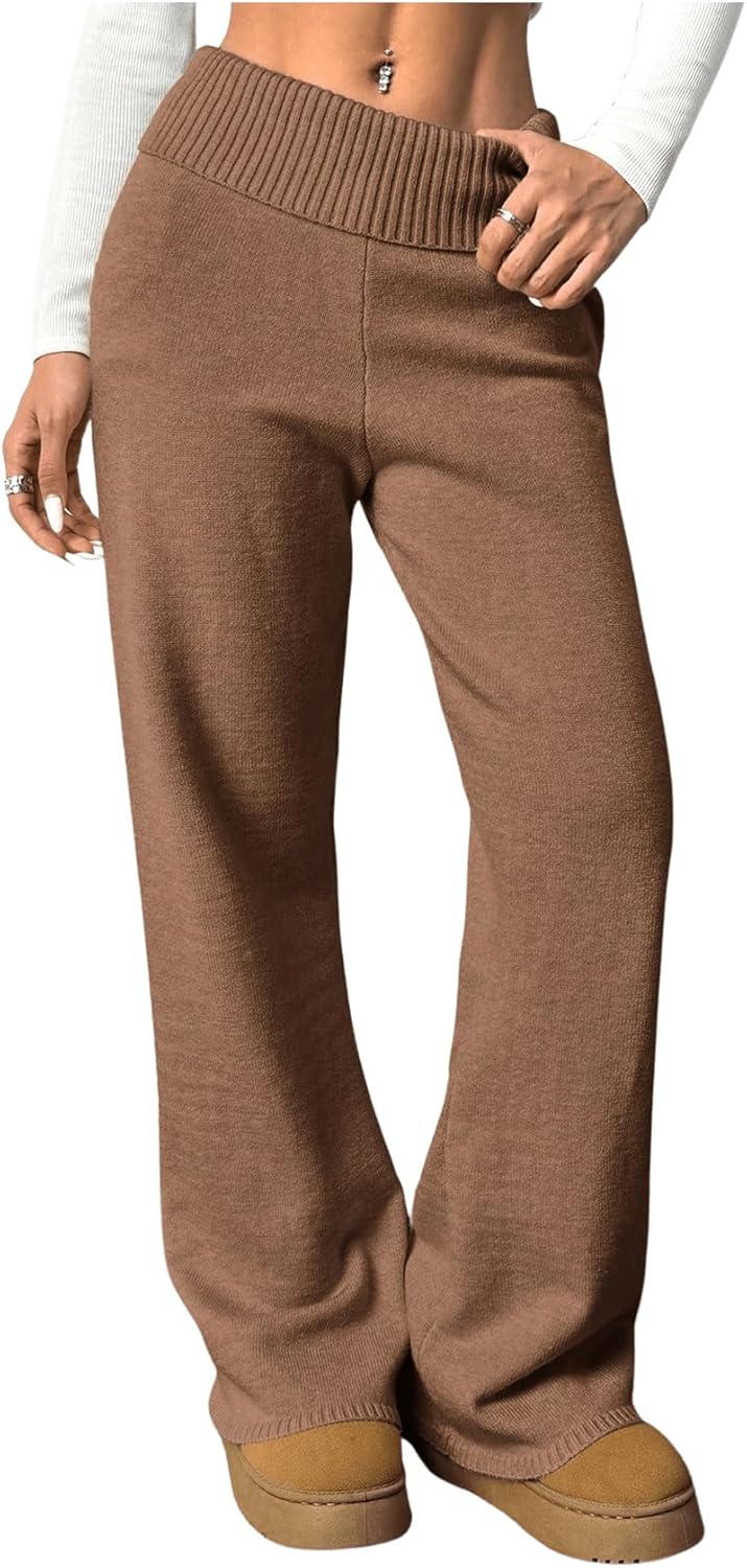 Verdusa Women's Fold Over Elastic Low Waist Lounge Pants Straight Leg Casual Sweater Pants
