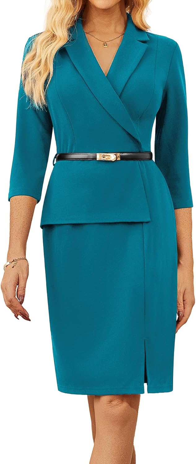 GRACE KARIN Women's Bodycon Work Dress 3/4 Sleeve Church Teacher Business Office Wear to Work Sheath Suit Dresses with Belt