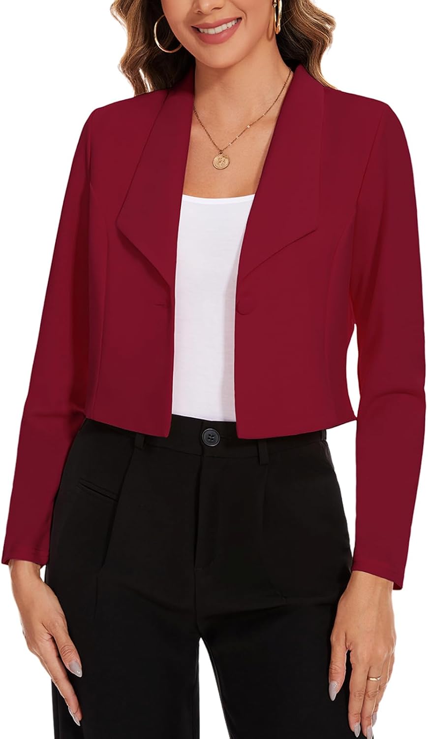 MINTLIMIT Women's Long Sleeve Cropped Blazer Lapel Collar Office Casual Blazers Button Open Front Business Work Suit Jacket